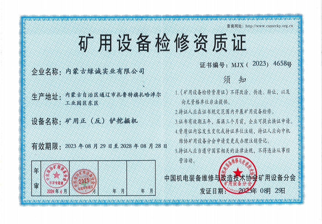 2018年我公司通過(guò)中國(guó)機(jī)電裝備維修與改造技術(shù)協(xié)會(huì)礦用設(shè)備分會(huì)審核并取得了9項(xiàng)礦用設(shè)備檢修資質(zhì)證書(shū)。公司本著“誠(chéng)信為本 質(zhì)量為先 全心全意為客戶 ”的服務(wù)理念,圓滿完成各個(gè)廠礦的機(jī)械維修及配套服務(wù),期待與您共同合作。